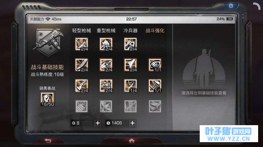 战斗天赋加点推荐: 战斗天赋相对于采集天赋来说又要谨慎一点了,在战斗天赋里有四种战斗天赋,分别是轻型枪械、重型枪械、冷兵器和战斗强化,最后的战斗强化是必须要加满的,另外三个则需要跟你你的实际情况来加点。 第一列轻型枪械,这是是平民玩家首选的天赋,如果你不是氪金大佬,也不是肝帝,那请你还是乖乖的加点轻型枪械吧。 第二列重型枪械,这一列天赋中,基础野外生存可以点一点,超远射程点一点,其他可以选择不加点,当然如果你是氪金大佬,自己感觉可以玩个狙击手的,而且还喜欢打架的,全部点满都可以。 第三列冷兵器,都可以点一点,基础格挡一定要点满,平时拿把小刀去秋日森林里刷刷感染者血液拿去卖还是挺不过的,而且加点了这个天赋后,你会发现虐小感染者真心很爽,当然,如果你不用冷兵器的话,可以直接把基础格挡加点满就可以,其他的可以不考虑。 第四列战斗强化,充沛补给可以考虑不加点,其余的可以都加点。 另外,在战斗天赋的加点还要考虑到你的武器问题,如果你是用步枪,uzi,冲锋枪比较多的,那么轻型机械肯定是优先考虑加点,如果你是用机枪之类的,那中间的重型机械肯定是首要考虑的目标。