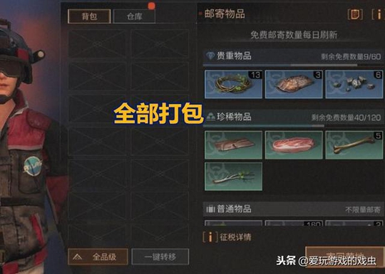 第7点:撤离点物资邮寄,大家都知道在每个地图都设有可以托运邮寄的撤离点的(交火区是分开的),而对于贵重物资和稀有物资的邮寄是有数量限制的,萌新一般都是把身上能寄走的全部托运回去,什么感染者血液、后腿肉等等全部打包;老手都是吃过亏的,所以一般都是选择性的邮寄,挑自己急需的物资优先。