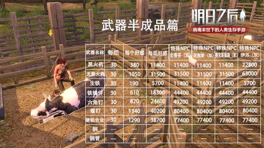 在现实人情社会中,有来有往的送礼方式,已经成为一种送礼习俗了。 在《明日之后》这款手游中,和NPC刷好感度拿回礼,也充分体现的这种送礼习俗。不过在《明日之后》的末世中,哪怕是傻大个也不愿意傻愣傻楞的一直送温暖!所以我们在送礼之前,得先了解下游戏中的NPC会给我们什么回礼。 NPC好感度的回礼列表