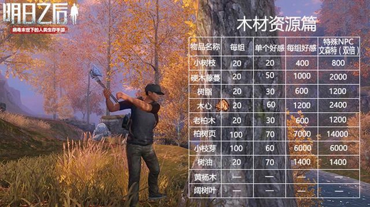 末世下的生活不容易,我们得学会精打细算地过日子。在送礼之前,事先对比好送礼的资源中,到底送什么会比较快,送什么更划算。在弄清楚NPC好感度的回礼信息和做好送礼资源分配后,我们就可以正式给他们送礼了。 资源送礼列表木材篇