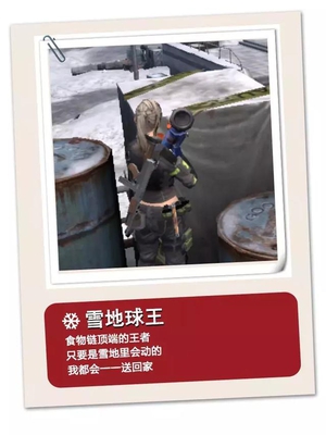 占据制高点, 占据制高点可更好观察对手动向为攻击或躲藏做准备,这一招很适用于直升飞机出现时,站在高处观察想要接近飞机的幸存者。接着就来看一看,各位幸存者们在圣诞玩法中的表现吧!欢迎对号入座!
