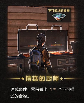 第一次获得这个成就时,沫沫内心是崩溃的,原以为在现实中不会烧菜做饭很尴尬了,想在游戏里找回自信,没想到几次失手,就获得了这个成就。不过作为特殊成就的存在,想达成的话,谁不得“失败”几次呢?嘿嘿~达成条件:累计做出10个不可描述的食物。 大摄影师