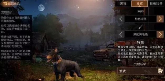 三、宠物狗也有秘密 宠物狗一共有3种,一般负重犬是最常用的,品种上可以选择拉布拉多,因为拉布拉多初始背包就有12格,它是所有负重犬里负重最多的宠物狗品种。而黑背则是最佳的搜寻狗,它可以给你叼回铁铸件、塑料、骨头、肉、布等物品,另外喂养可以生成宠物狗的后天天赋,所以每天不要忘记了给自己的宠物狗喂食物哦!