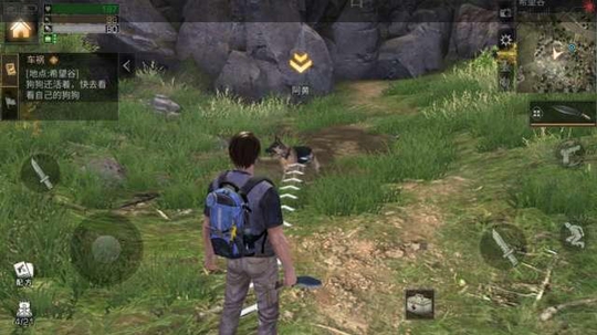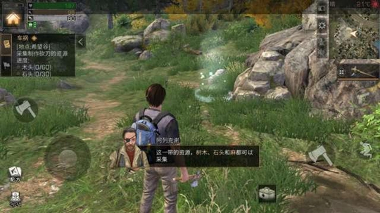 玩到这里,我自己的内心不禁有丝冷笑与轻蔑,“主角活了,那我的那条狗呢?大概率是死了吧”。果不其然,醒来之后我的阿黄并没有马上被我找到,取而代之的是新手引导NPC的出现,讲述着游戏生存的基本技能,采集物品、建造、攻击怪物,按照老套的剧情继续着。