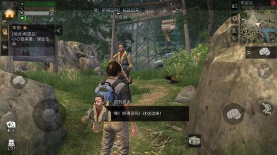 继续跟随着NPC来到了废弃的工厂,从另外的NPC口中了解到了游戏的背景,“哦,怪物原来就是感染病毒的‘普通人’,那变异的怪兽又是怎么回事?“,内心疑惑着,“哦,原来就是引导NPC的队友,那接下来是不是引导NPC带领我继续逃命了?”。