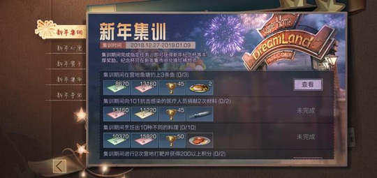 【新活动 新年集训】 这个活动一共有五大内容,满满的新年福利。新年集训人物都是一些比较简单容易完成的任务,多多关注即可,可以在集市兑换更多的稀有材料。新年心愿、新年贺卡是送给大家一些娱乐福利活动,需要一定的运气。最后一个新年夺宝,每个玩家每天都有一次免费的机会,可以获得上限属性极高的新款95式突击步枪和竞技用反曲弓,奉劝大家量力而行。