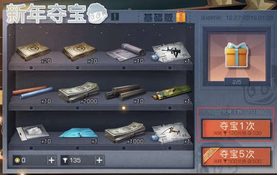 最后咱们在来看看新年夺宝:说实话夺宝这东西还真别碰了,每天免费抽一次就好了,说不定你欧皇还出个好东西了呢,但是脸一黑你抽个大几千都没好东西。