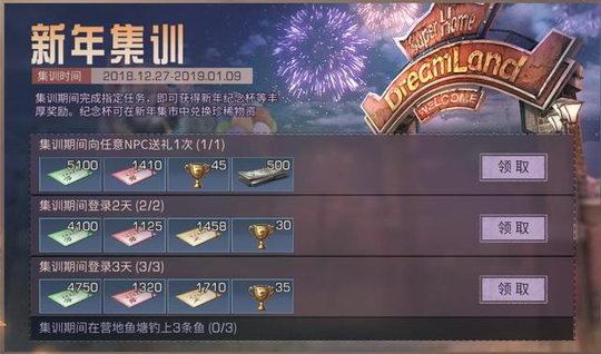 首先新年集训:这个咱们是必须参加的,里面的要求都不高,能做完尽量全部做完,奖励都很丰富,基本手点点就完事的那种,而且在这里可以获得用于新年夺宝的奖杯,小师弟初步算了下纪念奖杯可以获得915个,采集熟练度可以获得90100,制作熟练度可以获得27000,战斗熟练度可以获得32382,还有各种材料,总而言之这个活动务必参加,能做多少是多少,真的很良心了。