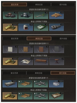 目前许愿只有三种奖励,个人建议选择“许愿技能”性价比会高点。