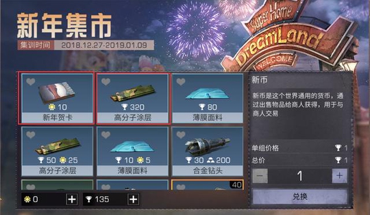 至于新年集市,小师弟个人认为首选高分子涂层和新币是最划算的,这两个就根据个人需求去换取,你缺啥你换啥,其它的就不建议去换了,因为真的不值。