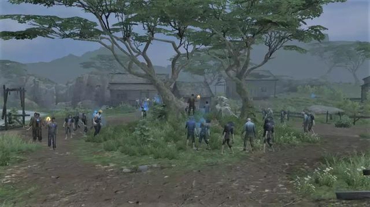 如果我们对人的定义可以宽泛一点……黑泉镇可以说有人。有一些黑泉镇的居民改变了信仰,在渡口朝拜的方向与其他村民朝拜的方向不一样。他们并排跪在渡口,机械地念出无法辨认的文字……拿着火把的居民,似乎还说着什么秘密。