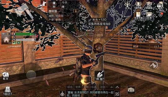 要说《明日之后》中沫沫最喜欢的PVP地图是哪张,就数南希市了,可以尽情地屠杀还有熟练度拿,还有什么是比这更快乐的事?南希市的打法是12V12,分为红蓝阵营,一局结束后,任务没做完的玩家会立马开启下一局,于是就出现了这样的现象:上一秒厮杀激烈的对手,下一秒就成了自己的队友,同理,也会有相反的情况。上图是沫沫开第二场对局时匹配的队友,其中一个玩家ID旁边还附上了一个红色标记,证明沫沫之前曾被他淘汰过,看来想复仇是不可能了,唯有并肩作战,争取这一局的胜利。 砍橡树苗出小树枝,新bug?