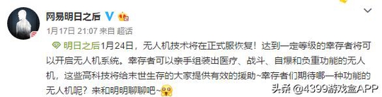 1月24日《明日之后》正式服将推出无人机,各位肝准备好了吗?