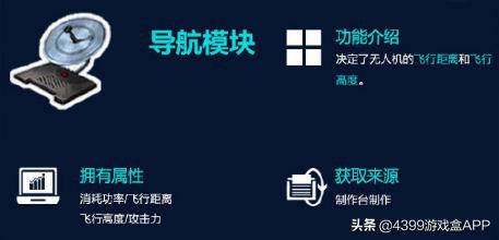 导航模块:决定了无人机的飞行距离和飞行高度,至于获取途径参考上述,同理还是制作台(万能制作台啊~)