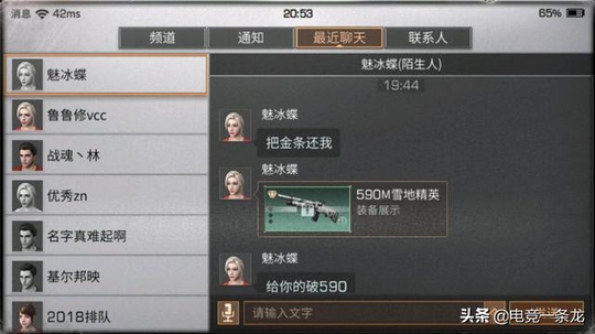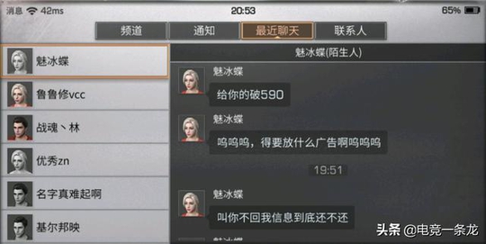 例2:玩家A在电视上不小心点到了广告,之后的做法绝了。玩家A竟然主动找到了投放广告的玩家,然后理直气壮的开始要求退货。玩家A说“把金条还我,给你的破590M”,emmm...通过这一句话,我基本上可以断定这位玩家的年龄应该比较小。