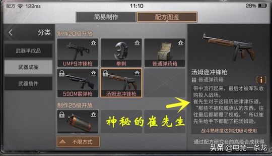 在汤姆逊冲锋枪的武器介绍一栏中提到“旧世界的古董枪械,具有一定的历史地位,汤姆逊冲锋枪刚开始遭到官方的拒绝,然后在灰色地带流行起来,最后才被军队收购投入战场。崔先生对于这段历史津津乐道,那些不被权威承认的东西,往往最后都颠覆了权威,所以崔先生给手下都配了把汤姆逊”。从这段介绍可以得出一个结论:崔先生应该是某一个兵团或者某一个势力的头头。