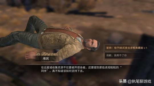 “碰瓷大叔”索要典藏95步枪,背后真相已水落石出!自打《明日之后》开放了“感染战”之后呢,各大地图里都或多或少的出现了一些需要玩家救助的难民大叔!不过在整个救助过程中呢,遇到了一些“狮子大张口”的难民大叔,比如有要木心的、要50个石头的甚至还有索要高分子的“碰瓷大叔”,而且最强的竟然还要一把典藏95步枪~