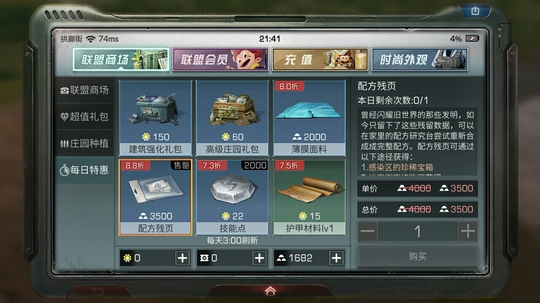 三:拱廊街的每日特惠:每天会有几率刷新3500金条20配方残页,(金条要靠自己去做做悬赏任务,打打各个场景的boss,卖卖东西了什么之类的)