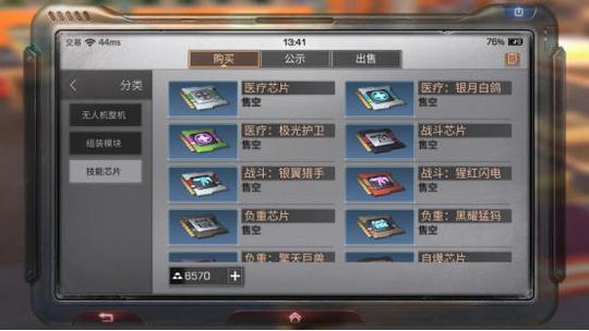 目前无人机的能力分为四种,战斗、医疗、托运和自爆。每一个都是有着很强的辅助能力,但是需要玩家来操控。每一种能力都是看无人机 版块 的强度在哪里。想要获取无人机的能力就需要先获取芯片,在这里有四个芯片;医疗芯片、战斗芯片、负重芯片和自爆芯片。这四种是普通无人机的芯片,并且无人机还可以拥有其他更高级的芯片,也就是所谓的涂装。在这里每个芯片有三种涂装,也就是12种造型。