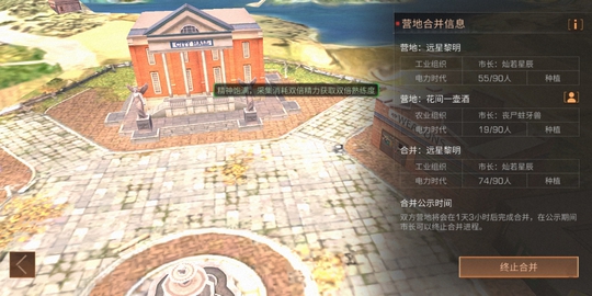招不到人的营地或者活跃玩家少的营地可以采取这种营地合并的方式,来找到更多的玩家一起玩耍。很多市长可能根本就没有用过这个功能,一天到晚就知道刷喇叭,耗资巨大,收效甚微。 在此,江西砍王小白提醒您 招人千万条 合并第一条 合并不规范 营友两行泪 请各位市长谨慎合并,事先与合并的营地说好要占几个官职几个荣誉市民,还有就是居住地重叠的问题。是否合并最好由营地的玩家投票决定,请各位市长不要搞独裁,不然人心离散,营地合并了也只是一盘散沙,貌合神离。