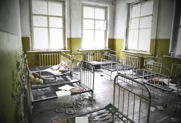 荒废的医院,只有铁架床默默记述着那场大灾难。