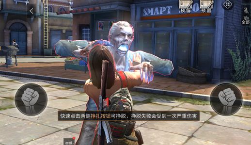 某些身手矫健的丧尸在发现玩家的时候,会从背后或者正面抓住幸存者并撕咬,需要快速挣扎才能逃脱,如果挣脱失败则会受到严重伤害。