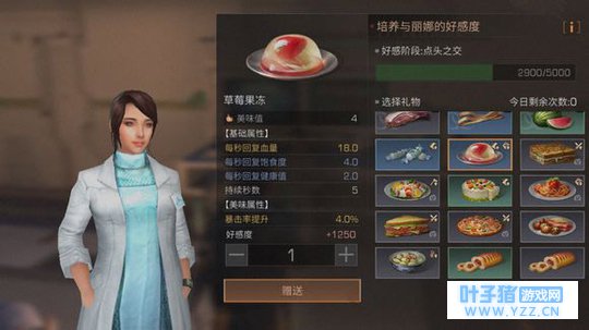 10、你在营地的银行里面的提款机上交营地需要的物资和金条就可以大量增加贡献。 11、很多人卡在不知道送沙石堡丽娜什么东西刷好感度高,目前发现比较高的是草莓果冻(牛奶+冰块+草莓+草莓)。