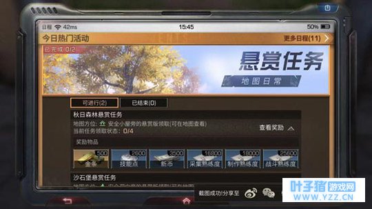 每天完成地图日常悬赏任务和营地的巡逻任务,可以获得大量的熟练度,而且任务都很简单,采采资源、杀几只怪、拍拍照之类的,十几分钟就能搞定。