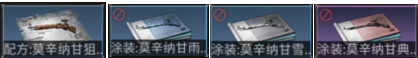 莫辛纳甘狙击枪: 获得:特级图纸抽取获得,抽取难度:非常低 武器皮肤: A. 莫辛纳甘雨战涂装:特级配方抽取,抽取难度:低 B. 莫辛纳甘雪地涂装:特级配方抽取,抽取难度:低 C. 莫辛纳甘典藏涂装:特级配方抽取,抽取难度:中 改造推荐: ①. 属性改造推荐:暴击率,爆头伤害提升 ②. 特性改造推荐:毁伤