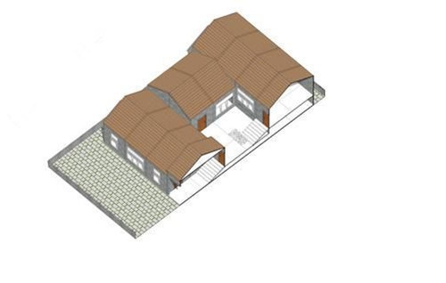 设二层,可做茶室 ,家具不多的可以用全平层~(另,此版本主要用2型屋顶及半身墙和矮墙打造层次感。