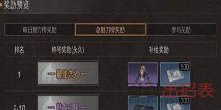 明日之后元宵节表白称号怎么获得?在这个活动中,大家能获取金色称号最佳恋人。小编给大家带来了元宵节表白称号获得方法一览,下面一起来看看吧。 明日之后元宵节表白称号获得攻略 每日榜单前20名 都会获得一定数量的金条以及糯米团子奖励,而 排名前十 的玩家还有最新的称号奖励:-最佳恋人- 或 -魅力之星- 奖励会在次日00:05通过游戏发放~ 而魅力总榜就厉害了, 榜单前20名将按梯度获得: 永久称号 -最佳恋人- 或 -魅力之星- 、数以百计的配方残页,佩佩创意家具以及两小无猜永久时装一套。 总结:排名前十的玩家,可以获取最新的表白称号奖励。 |
