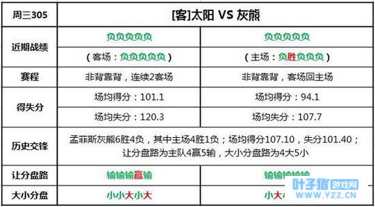 老鹰在重建之后已连续4次输给步行者,球队近4场比赛同样全败,本场可推荐步行者客胜赢盘。 周三305 太阳(客)VS灰熊 让分盘:灰熊-2.5 大小分:215.5
