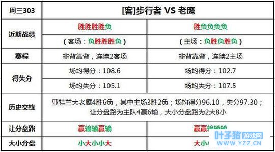 猛龙近期表现非常猛,客场让出9.5分获博彩公司力挺,本场可推荐猛龙客胜赢盘。 周三303 步行者(客)VS老鹰 让分盘:老鹰+4.5 大小分:210.5