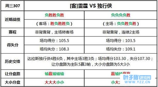 两队近期战绩都比较惨淡,灰熊应该稍稍占据主场优势,但也仅此而已。本场建议博大分。 周三307 雷霆(客)VS独行侠 让分盘:独行侠+5.5 大小分:214.5