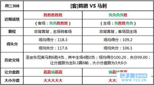 两队战绩相差无几,马刺近期主客场均有些起伏、低迷,本场推荐鹈鹕受让胜。 |