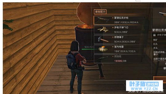 三、怎么利用制作枪械及防具? 制作步枪等高级点高级道具同样需要先按照配方准备好材料才行,并且需要配合相应打造台才行,如下以制作步枪为例为大伙做个简单展示: 首先当然是收集材料啦,蒙德拉贡步枪制作需要100石头200木头3铁矿(仅供参考,具体打造所需材料请以游戏内为准)。