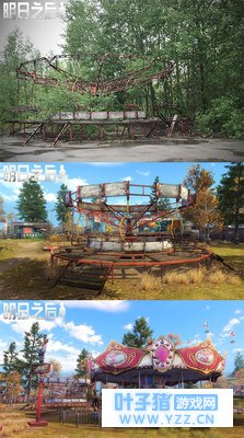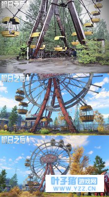 取景点二:旋转木马 在这里,开发组还看到了一座残破的旋转木马——回想一下当年灾变前,这座木马也承载了多少孩子的笑语欢声?所以制作组在游戏中还特别为它制作了一个“完美版”,让它以灾难前的样貌继续存在,以此纪念丧生于那场事故中无辜的人们……