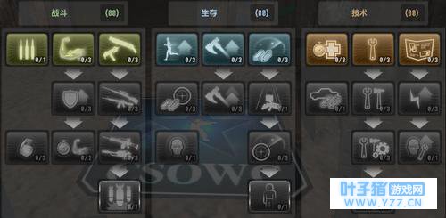 (上图《明日之后》,下图《怪形前传》) 天赋技能玩法也涉嫌抄袭,采集、机械、战斗技能分别对应CSOL2里的生存、技术、战斗,玩过CSOL2的玩家应该不难看出来:
