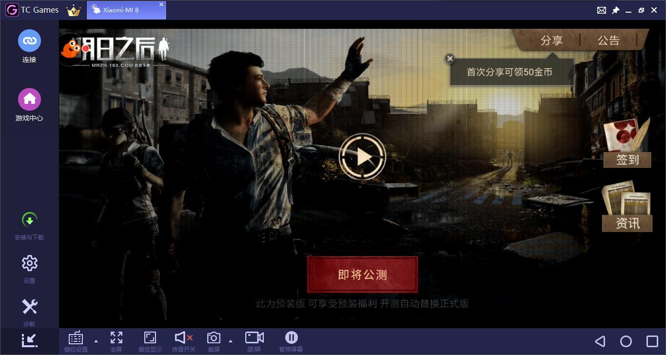 安卓玩家如果想提前玩的话可以在tcgames电脑玩手游助手游戏中心预约下载,无需等到11月6日,11月3日上午11点就能玩了。同一时间,tcgames会给明日之后适配好游戏默认操作按键,直接根据提示下载游戏按键就可以在电脑上玩了,无需再安装游戏模拟器。