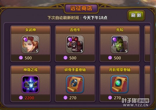 德拉诺远征玩法: 1、一共有15关,每关需要挑战敌方3名英雄 2、每逢3关会出银箱子,最后第15关挑战成功获得金箱子,有远征币以及丰富的奖励 3、远征币可以在远征商店兑换女武神、吉他牛、先知等英雄灵魂石以及其他的装备、经验药、附魔材料