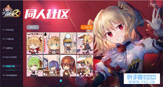 在官网的同人区中,将会上线5个版块,分别是MMD作品,CV剧作品,漫画作品,同人COS作品和表情包下载,同时欢迎玩家踊跃创造更多更优秀的同人作品。
