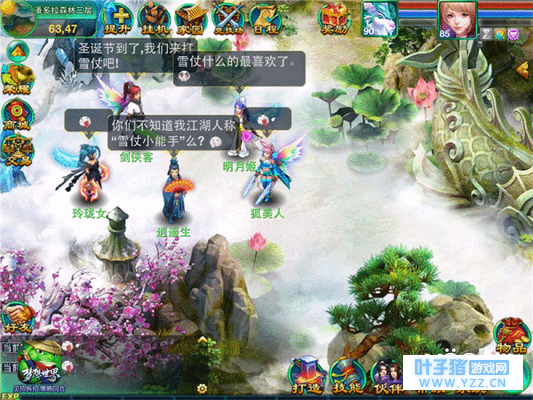 雪仗赛 有雪的地方,怎么能少了打雪仗呢?人物等级≥30级,到中州城(88,112)圣诞树处传送至雪仗赛战场,参加我们趣味无穷的圣诞雪仗赛。这与我们平时的战斗可是不一样的哦!玩家将获得六个新的战斗技能,每种技能的效果各异;系统会随机匹配对手,累计失败五次就会被清出战场。虽然是单人进场,不过这可是5V5的战斗哦。想要获得胜利并赢取更多奖励的话,就需要制定好战术,通过语音对话完成队员之间的默契配合。