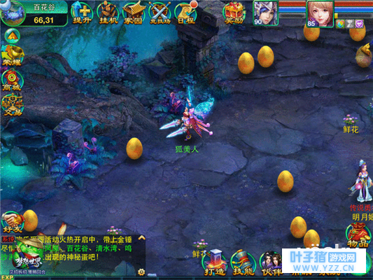 盗宝小妖 在这欢乐的时光里,总是会发生什么事情的。这不,每到整点或半点,都会在清水湾、百花谷、逐风原、鸣沙洲涌出一大波盗宝小妖来搞破坏。身负正义感的你,届时可要好好捕捉住这些顽皮的小妖,为民除害,同时还会有丰厚奖励哦。据说小妖血越少的时候越容易被捕捉,大家可要把握好时机,别打的差不多的时候让他逃跑了哦,虽然小妖逃跑了也有机会获得奖励。