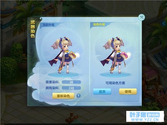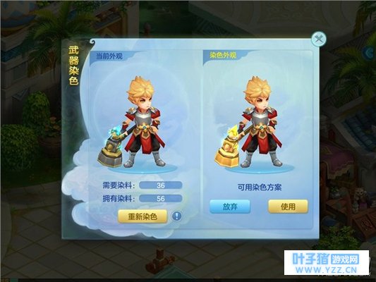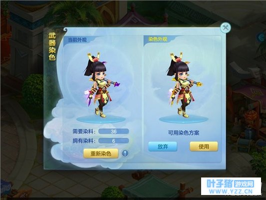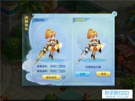 图中分别为6个角色的光武展示,可以看出,梦想3D的光武仅为某个特定部位的发亮,并不是整个武器的发亮。追求出众但是不“亮瞎眼”,竟给人以一种简简单单,舒服又出众的感觉,说起来这和梦想3D清新干净的画风也十分搭呢。在金光闪闪的游戏到处飞的时代,这样干净的画风反而给人清新、眼前一亮的感觉! 当你的武器属性是金色/紫色的时候,就可以去找明月城的造型师为自己心爱的武器染色了!接下来一起来看看这6位角色的光武染色后会出现什么样的惊艳效果呢!