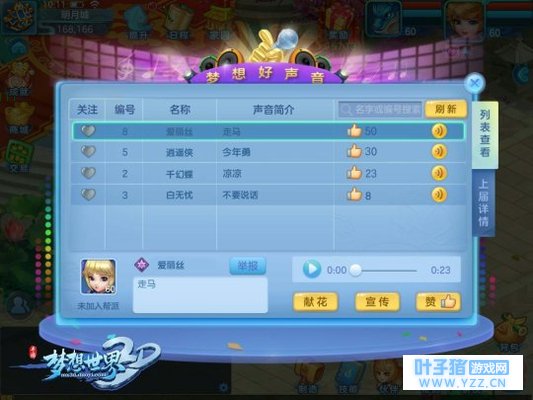 想唱就唱 梦想之声 《梦想世界3D》梦想好声音活动也在节日来临之际和大家见面了!继选美大会、选帅大会之后,玩家们又多了一个不看颜值和外貌的展示自己的平台啦!想要参加活动的玩家可以前往明月城(162,162)处的好声音导师报名,排名靠前的玩家有机会获得特殊称谓、气泡装饰和时装等奖励!