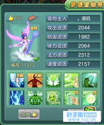 在《梦想世界》手游里,“梦想宠物秀”游戏内活动每月一次,获得点赞数或者拍砖数的第一名都能获得随机高级魔兽要诀一本哦!每次的宠物秀活动,都能出现一些让人羡慕不已的极品宠物,今天小编带着你瞧瞧这届的宠物吧! 梦想小姐姐梁洁祝福视频: http://v.youku.com/v_show/id_XMjk1MTkyNTMyOA==.html 十技能天使姐姐 问鼎第一 天使姐姐不愧是宠物界最高等级的十技能宠物,上届梦想宠物秀前五就有三只是天使姐姐,而这只更是以超高的攻资问鼎第一。虽然是满攻资,但还是选择了当个控制系肉宠,带点审判克制神佑宠,高必高强力补充一点伤害,很全面发展了。