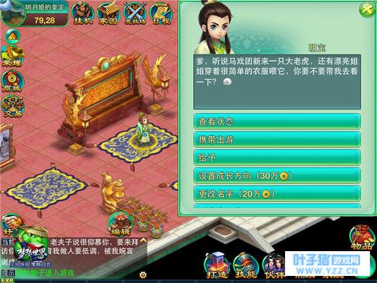 【图二:卖萌可爱】 上阵父子兵 子女实力皆不弱 在《梦想世界》手游中,子女可以拜入不同的师门,学习不同的技能。子女的技能颇为强势,比起普通宠物的技能强上不少。玩家还可以为子女传授神功要诀,让子女如虎添翼。子女还可以学习天赋,使用相应门派的天赋书即可开启被动门派天赋,或对玩家加成属性,或提升子女自身能力。另外,子女在未成年时,便可以通过对其使用红木剑、山海经、沙包等道具,大幅提升对应属性。一个培育得当的子女,绝对会成为玩家闯关除魔的最强助力!