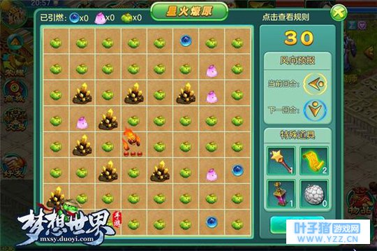 【便玩家游戏www.bianwanjia.com7月6日消息】《梦想世界》手游暑期正式开启!夏日全民大作战,约上好友一起寻宝冒险!这个暑期有哪些精彩好玩的活动呢?跟着小编一起来看一下吧! 【推荐新服】iOS安卓跨平台新服“乘风破浪” 星火燎原 益智策略 暑假期间每周一开放,是一个棋盘型策略玩法。每回合开始时,场上的鬼火会根据当前回合的风向引燃位于下风向的毛草团,玩家的目标就是通过计算与规划,有效的使用道具控制火焰走向,尽可能多的获取宝箱和击杀怪物。