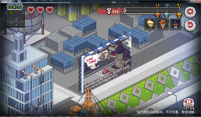 游戏小彩蛋之电影《金刚》 尽管NEXT Studio的创立到现在还不满一年,仍处于研发阶段。但是在几个独立游戏大奖的加持下,他们的实力和野心已经初见端倪。特别是在《死神来了(Death Coming)》此作上尤为低调,特意避开“腾讯游戏”的光环,抛弃微信和手Q的加持,我们有理由相信腾讯是想要考察玩家是否愿意为真正优秀的游戏买单。开发团队回忆时曾说到,当初参加Pax West展会,他们连个像样的展位都买不到,甚至连宣传都没有。最后靠着恳求一个小厂商在角落里放台笔记本给玩家体验游戏获得了全球著名游戏网站Kataku主动报道,称《死神来了(Death Coming)》是“Pax West最酷的五个独立游戏之一”。