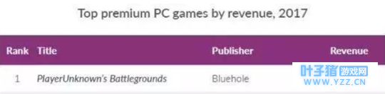 付费游戏榜的头名,今年大红大紫的《绝地求生》收入也只有CF的一半。